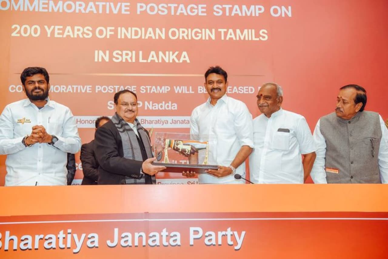 இலங்கையில் இந்திய வம்சாவளித் தமிழரின் 200ஆம் ஆண்டு நிறைவைப் போற்றும் வகையில் சிறப்பு அஞ்சல்தலை வெளியிடப்பட்டுள்ளது. பாஜக தலைவர் ஜே.பி.நட்டா வெளியீட்டு விழாவில் கலந்துகொண்டு அஞ்சல்தலையை வெளியிட்டுள்ளார்.