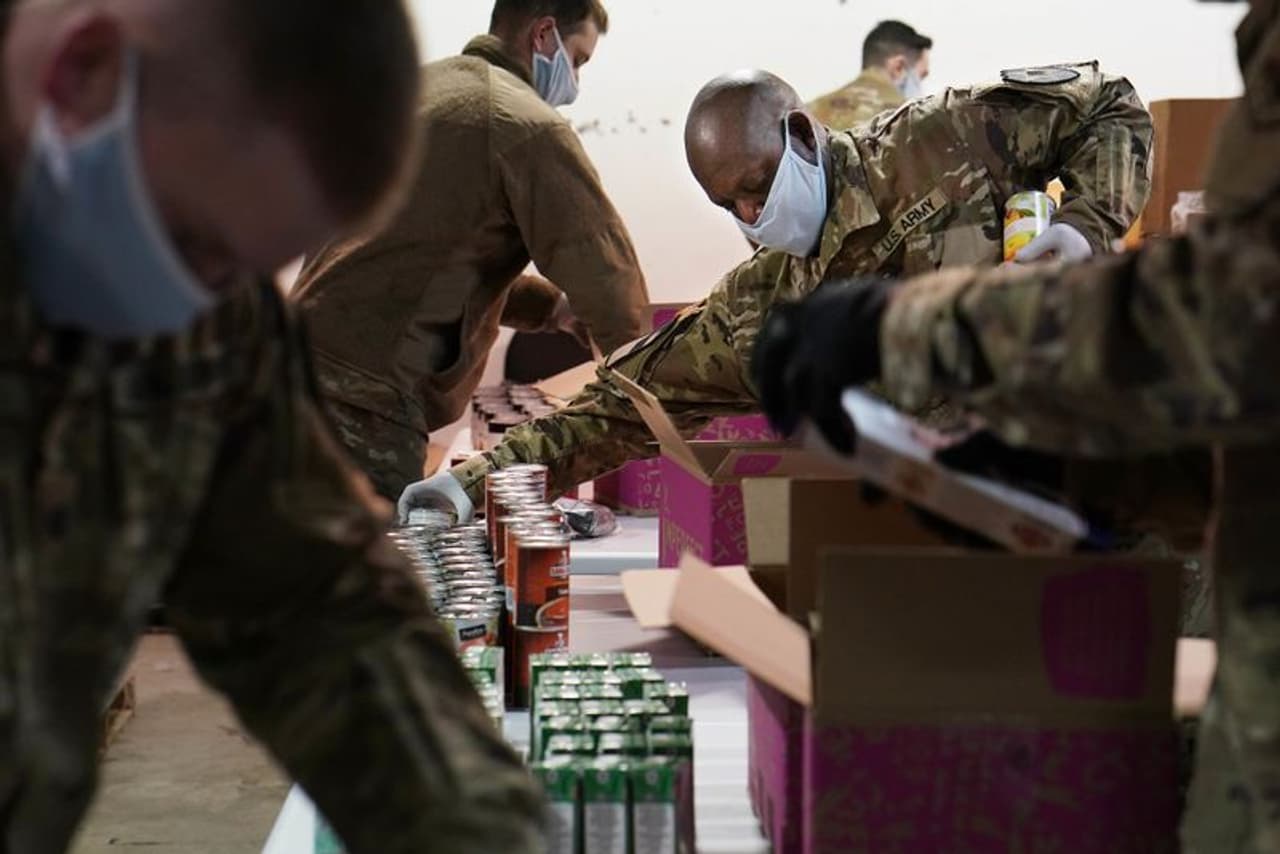 அப்படி அமெரிக்காவின் ஒமாஹா என்ற நகரில் இயங்கி வரும் உணவு வங்கி முன்பு உணவை வாங்கிச் செல்வதற்காக பல கிலோ மீட்டர் தூரத்திற்கு மக்கள் காத்திருக்கும் நிலை ஏற்பட்டுள்ளது. வணிக வளாகங்கள், ஓட்டல்கள் ஆகியன மூடப்பட்டுள்ளதால், உணவு கிடங்கிற்கு வருவோரின் எண்ணிக்கை பலமடங்கு அதிகரித்துள்ளது. வாஷிங்டன் மற்றும் லூசியானா மாகாணங்களில் உணவு பொருட்களை கொண்டு சேர்ப்பது, பகிர்ந்தளிப்பது போன்ற பணிகளுக்கு ராணுவத்தினர் பயன்படுத்தப்படுகின்றனர்.