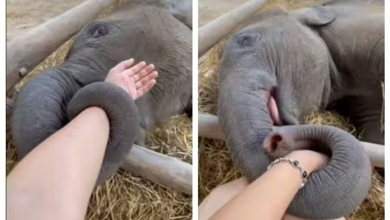 தற்போது வைரலான இந்த வீடியோவை ட்விட்டரில் ப்யூடென்கெபிடன் என்பவர் ட்விட்டரில் பகிர்ந்துள்ளார். அந்த வீடியோவில், ஒரு குட்டி யானை அதன் பராமரிப்பாளரின் கையைப் பிடித்திருப்பதைக் காணலாம். குட்டி யானை தனது தும்பிக்கையை பராமரிப்பாளரின் கையைச் சுற்றி கொண்டுள்ளது. இணையத்தில் பகிரப்பட்ட இந்த வீடியோ மூன்று மில்லியனுக்கும் அதிகமான பார்வைகளைப் பெற்றது.