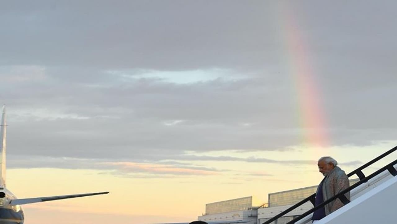 பிரதமர் மோடிக்கு வானவில் வரவேற்பு: