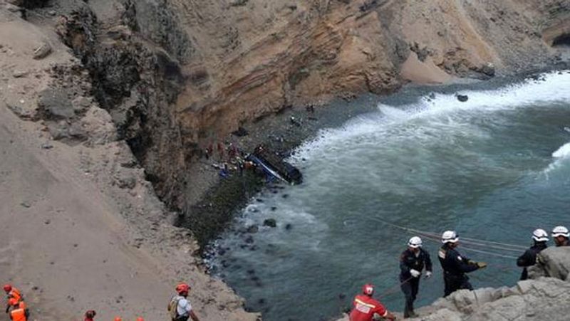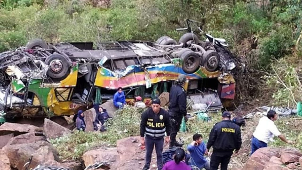பெரு நாட்டில் 300 அடி பள்ளத்தில் தலைகுப்புற பேருந்து கவிழ்ந்து விபத்துக்குள்ளானது. இந்த விபத்தில் 23 பேர் உடல் நசுங்கி சம்பவ இடத்திலேயே பரிதாபமாக உயிரிழந்தனர்.