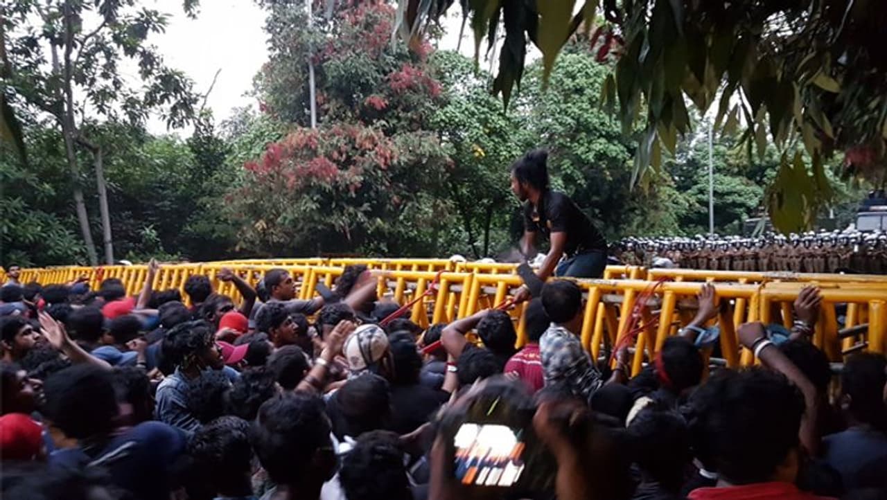 இலங்கையில் ஏற்பட்டுள்ள மோசமான பொருளதாரச் சிக்கலுக்கு காரணமாக இருக்கும் அதிபர் கோத்தபய ராஜபக்ச, பிரதமர் மகிந்த ராஜபக்ச இருவரும் பதவி விலக வேண்டும் எனக் கோரி நாடுமுழுவதும் மக்கள் கடந்த ஒரு மாதத்துக்கும் மேலாகப் போராட்டம் நடத்தி வருகிறார்கள். ஆனால், போராட்டத்தை அடக்க பல்வேறு இடங்களில் போலீஸார் முயன்றபோது மக்களுக்கும், போலீஸாருக்கும் மோதல் கைகலப்பு ஏற்பட்டது.