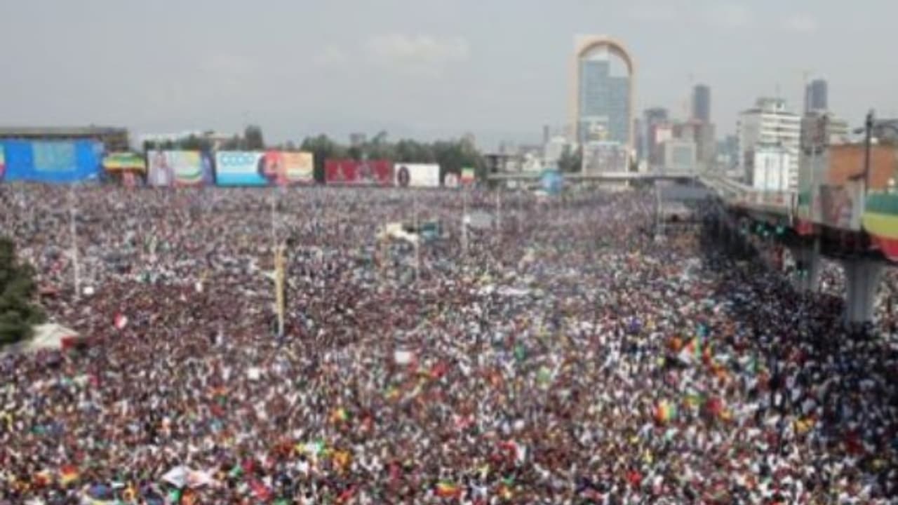 எத்தியோப்பியாவின் புதிய பிரதமராக அபை அகமது கடந்த ஏப்ரல் மாதம் பதவியேற்றார். அந்நாட்டின் தலைநகரான அடீஸ் அபாபாவில் இன்று நடந்த மாபெரும் பேரணியில் பிரதமர் அபை அகமது கலந்துகொண்டு பேசினார்.