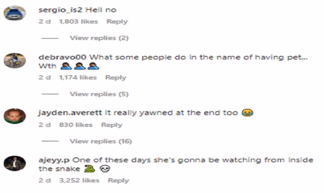 இதுத்தொடர்பான வீடியோ காண்பவரை அதிர்ச்சியிலும் அச்சத்திலும் ஆழ்த்தியுள்ளது. இந்த வீடியோவை இதுவரை 5 மில்லியன் பார்வைகளை பெற்றுள்ளது. அந்த வீடியோவில் சிறுமி மிகுந்த கவனத்துடன் டிவியில் எதையோ பார்த்துக் கொண்டிருக்கிறார். அவரது அருகே மஞ்சல் நிற மலைப்பாம்பு ஒன்று சிறுமியை சுற்றி உள்ளது.