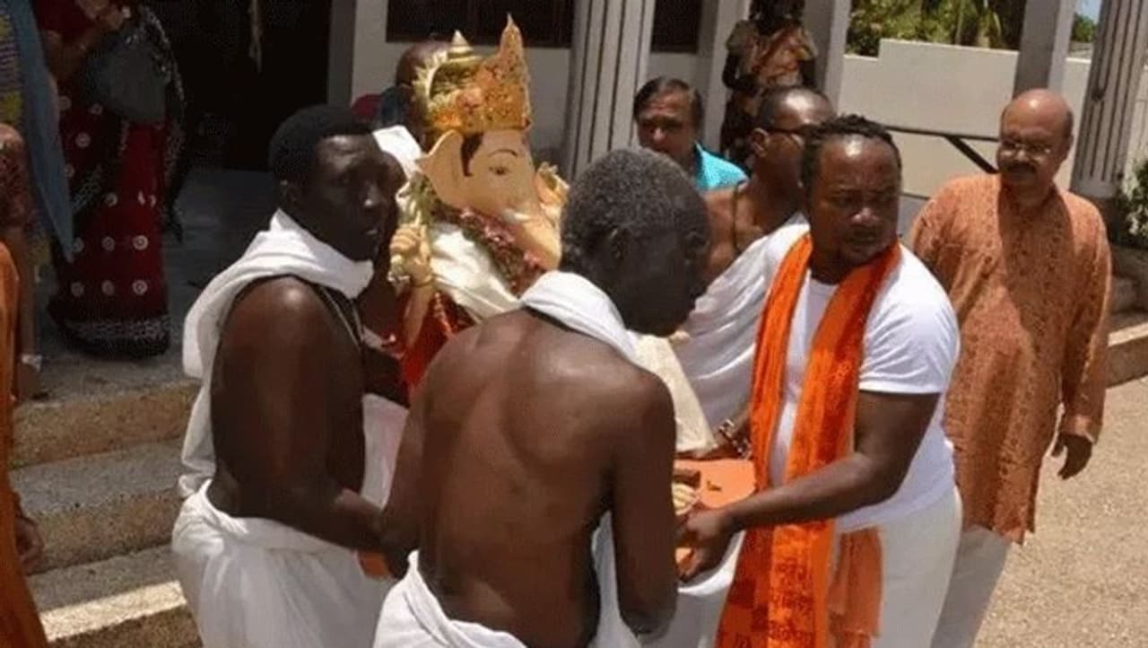 ஆப்பிரிக்க மக்கள் மெதுவாக இந்து மதத்தை ஏற்கத் தொடங்கி உள்ள நிலையில் திருமணத்தையும் இந்துக்கள் முறைப்படி நடத்தி வருகின்றனர்.