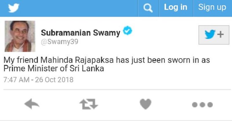 இது குறித்து பாஜக எம்.பி. சுப்ரமணியன் சுவாமி தனது டுவிட்டர் பக்கத்தில் எனது நண்பர் ராஜபக்சே இலங்கை பிரதமர் ஆகபதவி ஏற்றுக் கொண்டுள்ளார். அவருக்கு வாழ்த்துக்கள் என தெரிவித்துள்ளார்.