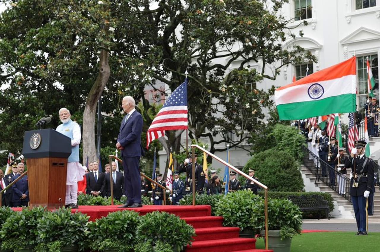 3 நாள் அரசு முறை பயணமாக அமெரிக்கா சென்றுள்ள பிரதமர் நரேந்திர மோடிக்கு இன்று வெள்ளை மாளிகையில் பிரமாண்ட வரவேற்பு அளிக்கப்பட்டது. தொடர்ந்து பிரதமர் மோடியை வரவேற்று பேசிய அமெரிக்க அதிபர் ஜோ பைடன் “ வெல்கம், மிஸ்டர் பிரைம் மினிஸ்டர்" என்று அமெரிக்க அதிபர் ஜோ பிடன் பிரதமர் மோடிக்கு வாழ்த்து தெரிவித்தார். மேலும் “ அரசுமுறைப் பயணமாக உங்களை இங்கு முதன்முதலில் விருந்தளித்ததில் நான் பெருமைப்படுகிறேன்.
