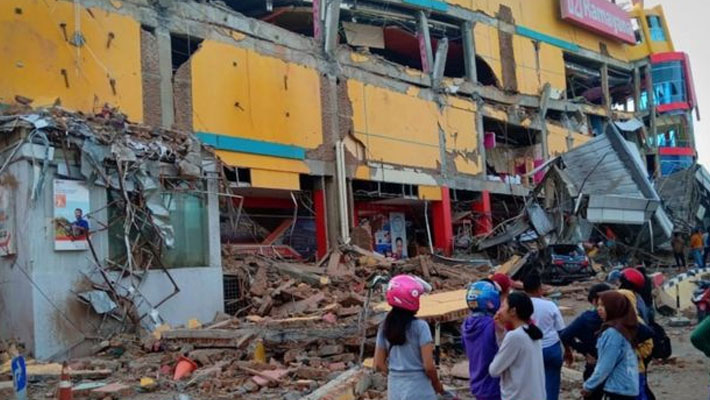 சுலவெசி தீவின் பலு நகரில் ஆயிரக்கணக்கானோர் கூடியிருந்த கடற்கரை விழாவில் சுமார் 20 அடி உயர சுனாமி அலைகள் தாக்கியது. இதனால் பலு நகரம் கடுமையாக பாதிக்கப்பட்டுள்ளது. கட்டிட இடிபாடுகள், வேருடன் பெயர்ந்து விழுந்த மரங்கள், வாகனங்கள் என குப்பை மேடு போன்று காட்சியளிப்பதாக தெரிவிக்கின்றனர்.