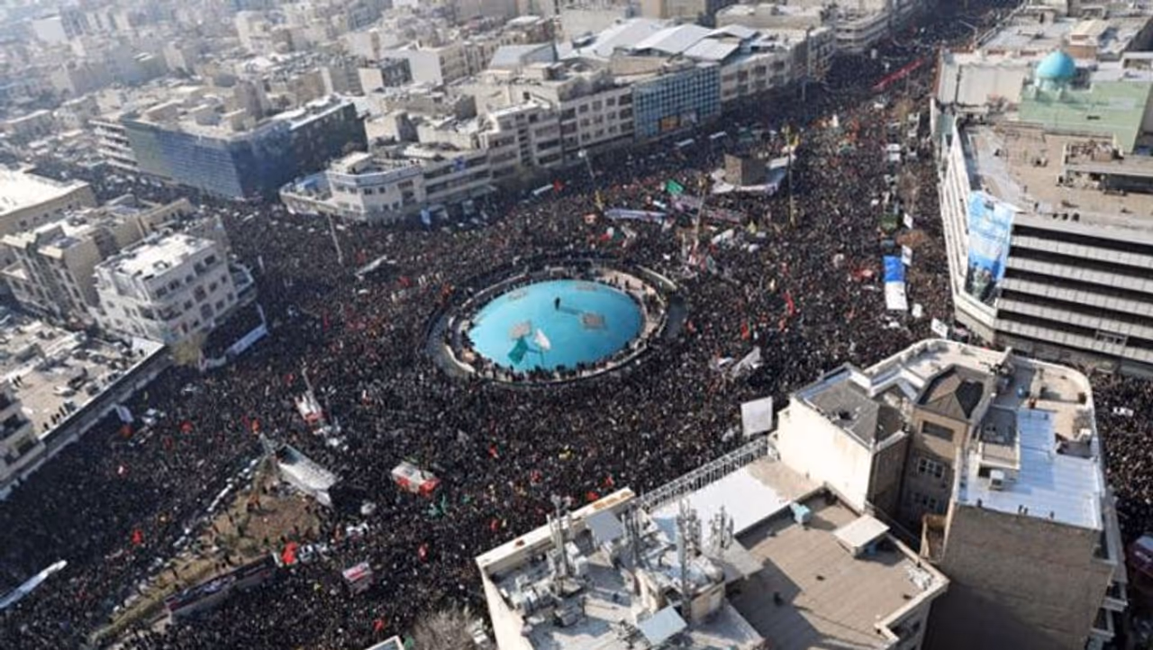 இந்நிலையில், ஈராக்கில் இருந்து கொண்டுவரப்பட்ட சுலைமானியின் உடலுக்கு ஈரான் தலைநகர் டெஹ்ரானில் நேற்று இறுதி சடங்குகள் நடந்தன. அங்குள்ள ஒரு பல்கலைக்கழகத்தில் அவரது உடல் பொதுமக்கள் அஞ்சலிக்காக வைக்கப்பட்டிருந்தது. சுலைமானியின் உடலுக்கு அஞ்சலி செலுத்துவதற்கு லட்சக்கணக்கான பொதுமக்கள் அப்பகுதியில் குவிந்தனர். அவர்கள் அனைவரும் கறுப்பு நிற உடையில் வந்திருந்தனர். இதனால் டெஹ்ரான் நகரமே கறுப்பு நிறமாக மாறியது போல காட்சியளித்தது. மக்கள் தங்கள் கைகளில் கறுப்பு மற்றும் ஈரான் நாட்டு கொடிகளை ஏந்தியபடி அமெரிக்காவுக்கு எதிராக கோஷங்களை எழுப்பி பேரணியாகச் சென்றனர்.