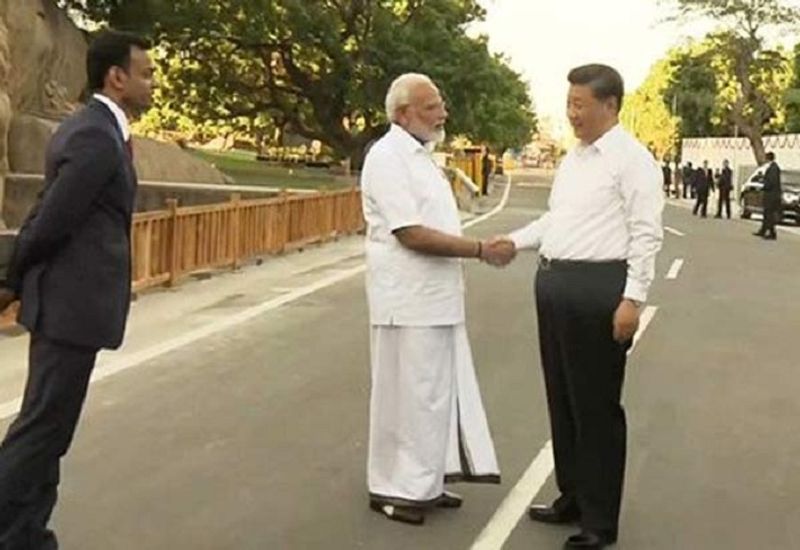 மாமல்லபுரம் வந்த சீன அதிபர் ஜி ஜின்பிங்கை பிரதம்ர் நரேந்திர மோடி தமிழர்களின் பாரம்பரிய உடையான வேட்டி, சட்டையுடன் வரவேற்றார். சீன அதிபருக்கு மாமல்லபுரத்தில் உள்ள சிற்பங்களின் தொன்மையையும், பெருமையையும் விளக்கி கூறினார் மோடி. இதைத் தொடர்ந்து பல்வேறு பகுதிகளில் இருவரும் புகைப்படம் எடுத்துக் கொண்டனர்.