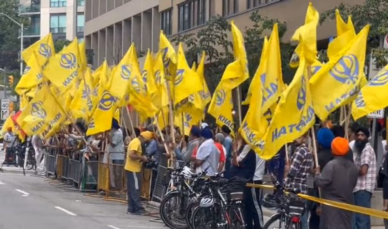 கனடா நாட்டின் டொராண்டோ நகரில் உள்ள இந்திய தூதரகத்திற்கு வெளியே இன்று காலிஸ்தான் ஆதரவு ஆதரவாளர்கள் சிலர் கூடினர். அவர்களுக்கு எதிராக இந்தியாவுக்கு ஆதரவான சமூகத்தைச் சேர்ந்தவர்களும் அதிக எண்ணிக்கையில் கூடி, இந்திய தேசியக் கொடியை ஏந்தி "பாரத் மாதா கி ஜெய்", "வந்தே மாதரம்", "இந்தியா வாழ்க" போன்ற் கோஷங்களை எழுப்பினர்.