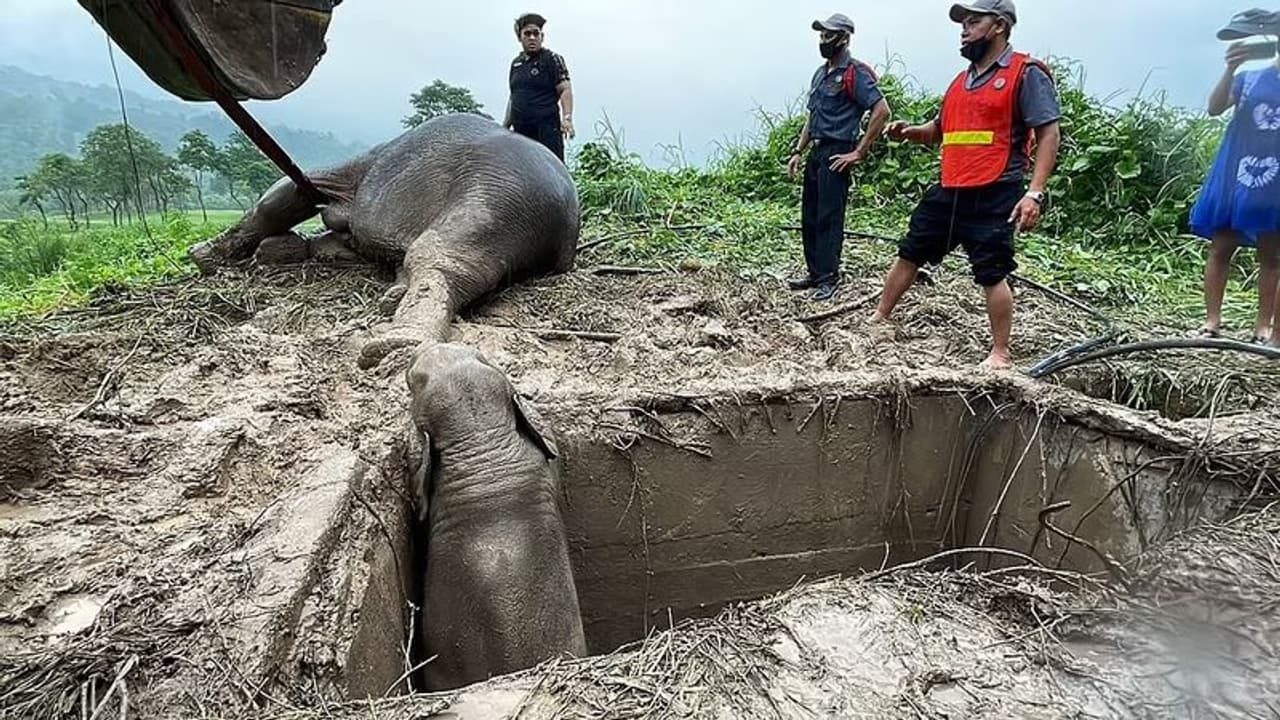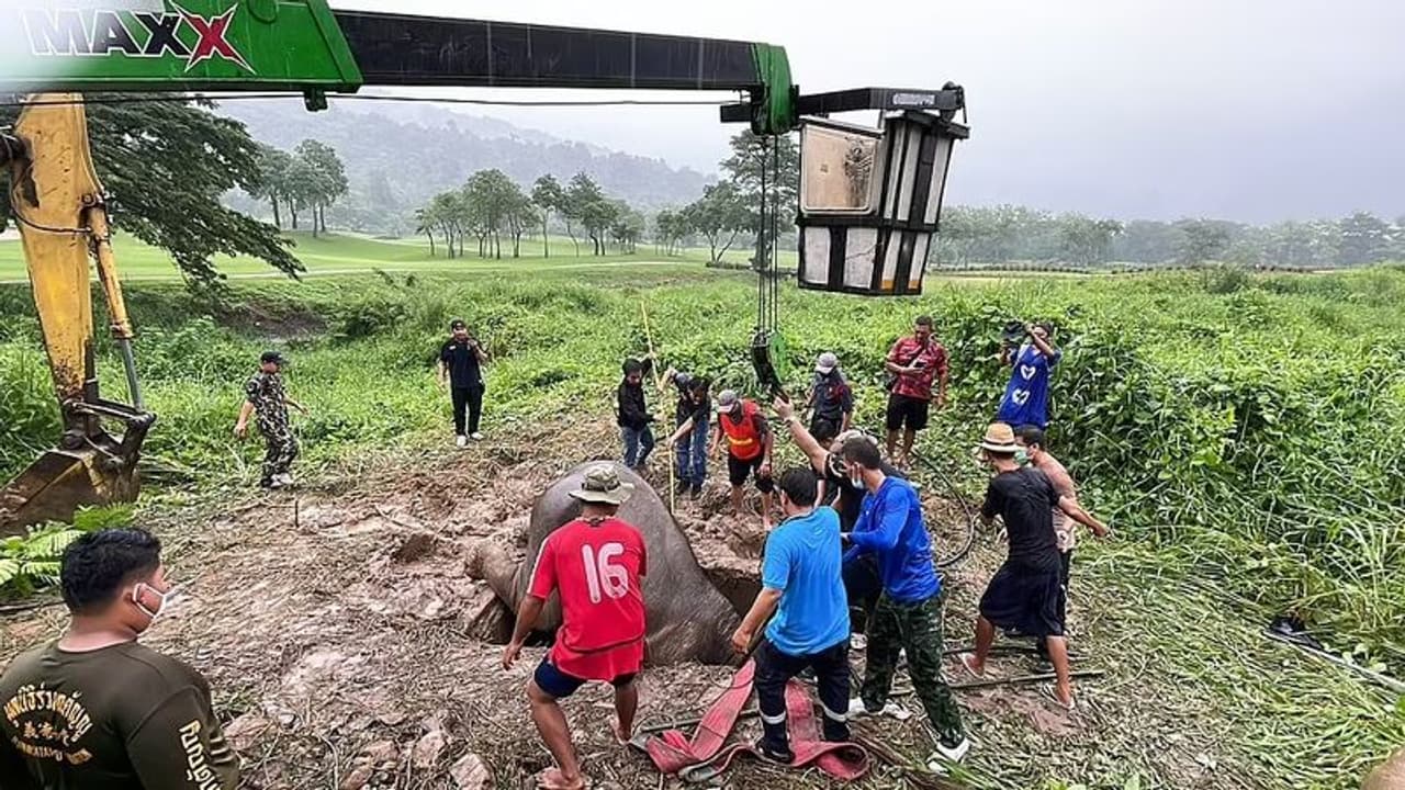 இந்த சம்பவம் நகோன் நயோக் மாகாணத்தில் உள்ள காவ் யாய் தேசிய பூங்கா, ராயல் ஹில் கோல்ஃப் மைதானம் பகுதியில் உள்ள மேன்ஹோலில் நடந்துள்ளது. ஒரு வயது மதிக்க தக்க யானை குட்டி அந்த பள்ளத்தில் விழுந்ததை அடுத்து, தாய் யானை குட்டியை வெளியே கொண்டு வர தன்னால் இயன்றவரை முயற்சி செய்தது. இருப்பினும், தொடர்ச்சியான மழை கொடியதாலும், சேறு காரணமாகவும் தாய் யானையின்அனைத்து முயற்சியும் வீணாக்கியது.