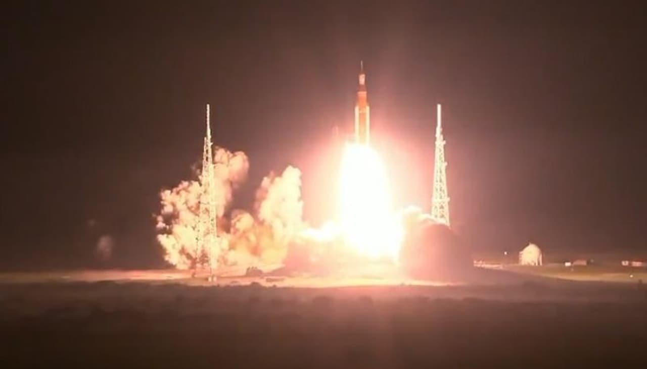 இன்று இந்திய நேரப்படி மதியம் 12.17 மணிக்கு புளோரிடாவின் கேப் கேனவெரலில் உள்ள கென்னடி விண்வெளி மையத்தில் இருந்து வெற்றிகரமாக ஏவப்பட்டது. விண்வெளி ஏவுதள அமைப்பு (SLS) ராக்கெட் மற்றும் ஆளில்லா ஓரியன் விண்கலத்தை நிலவுக்கு செலுத்தியது.