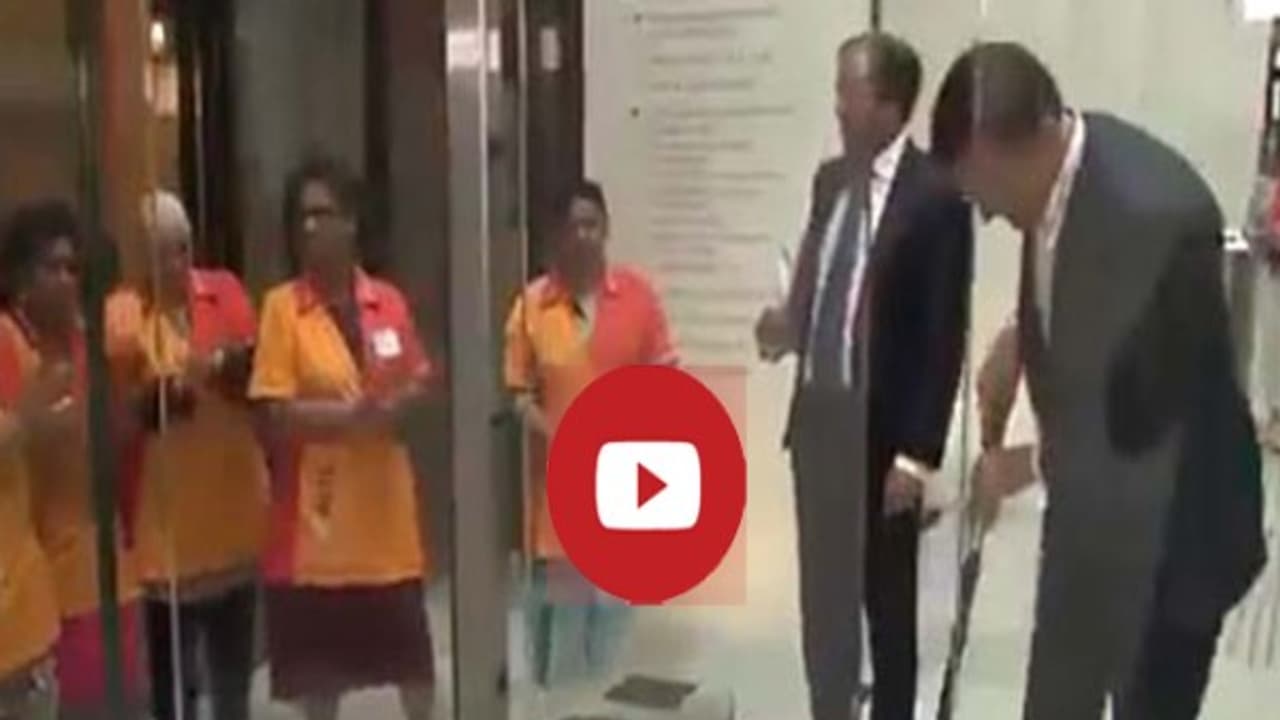 நெதர்லாந்து பிரதமர் மார்க் ரூடே தான் கொட்டிய காபியை தானே சுத்தம் செய்த வீடியோ ஒன்று இணையதளங்களில் வைரலாக பரவி வருகிறது.