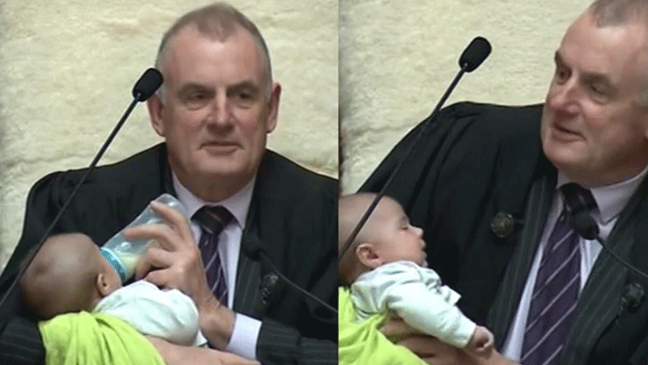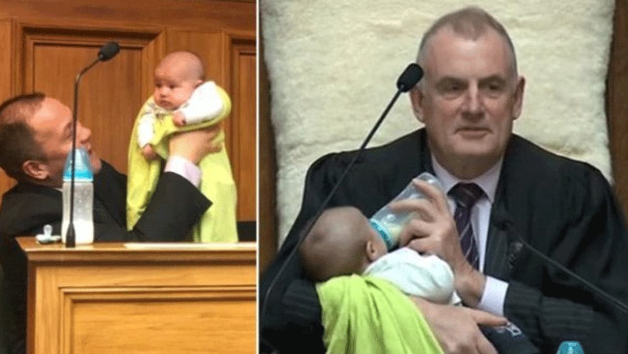 இந்நிலையில், நேற்று நாடாளுமன்ற கூட்டத்தில் பங்கேற்பதற்காக, தந்தை டமாடி கபி, தனது குழந்தை ஸ்மித்துடன் வந்தார். பிரதிநிதிகள் சபையில் நடைபெற்ற விவாதத்தில் அவர் தனது குழந்தையை கையில் ஏந்தியபடியே காரசாரமாக பேசிக்கொண்டிருந்தார். இதை கண்ட சபாநாயகர் ட்ரவர் மல்லார்டு, அவரிடம் இருந்து குழந்தையை வாங்கினார். பின்னர், குழந்தையை தன்மடியில் கிடத்தி அங்கு பாட்டிலில் இருந்த புட்டி பாலை குழந்தைக்கு புகட்டினார். டிரவர் மல்லார்ட் தான் குழந்தையுடன் இருக்கும் புகைப்படத்தை டுவிட்டரில் வெளியிட்டார்.