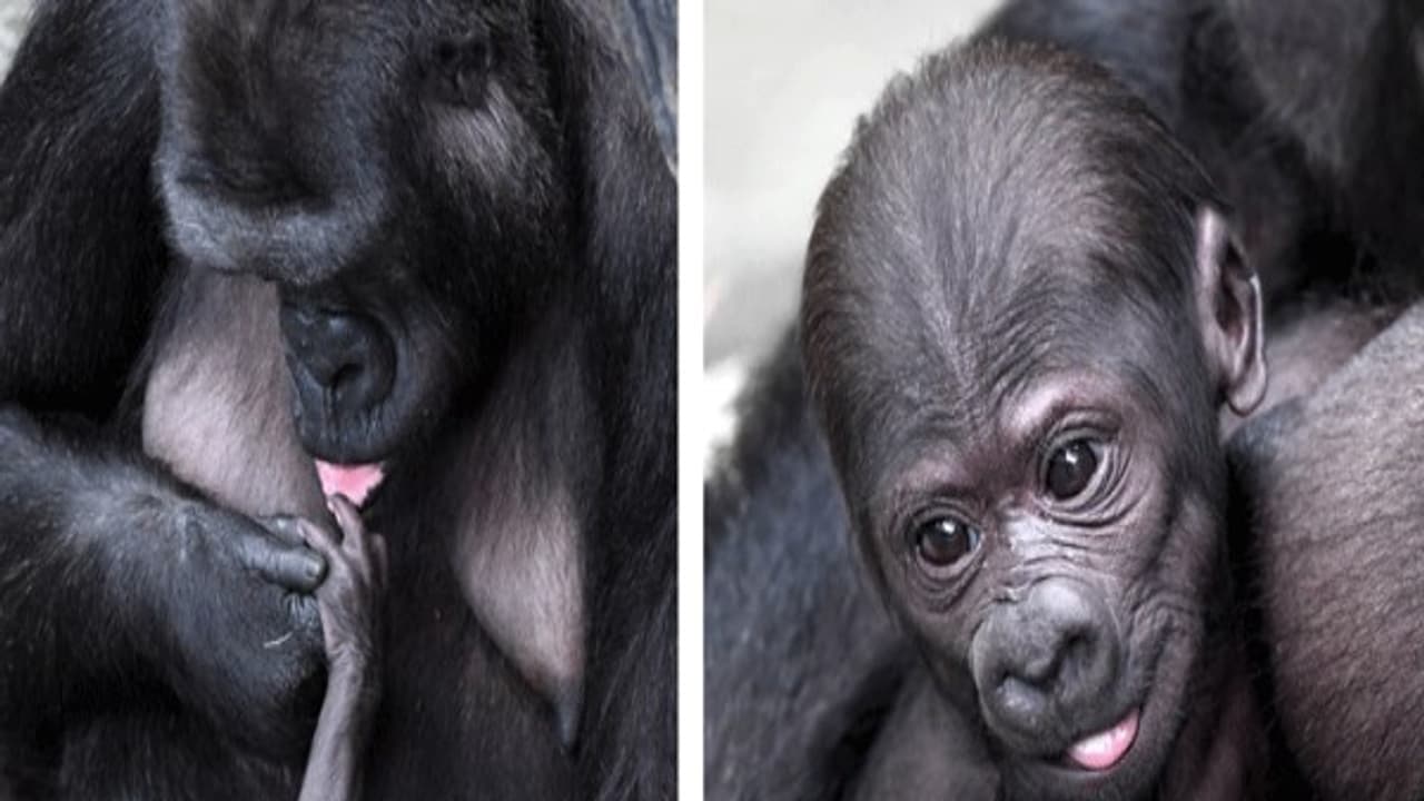 இன்னும் பெயரிடப்படாத இந்த குட்டி, தனது தாயின் கையில் தவழ்ந்து விளையாடி மகிழ்கிறது. தனது குழந்தையை கையில் எடுத்த தாய் கொரில்லா நெஞ்சோடு இறுக அணைத்துக்கொண்டது.