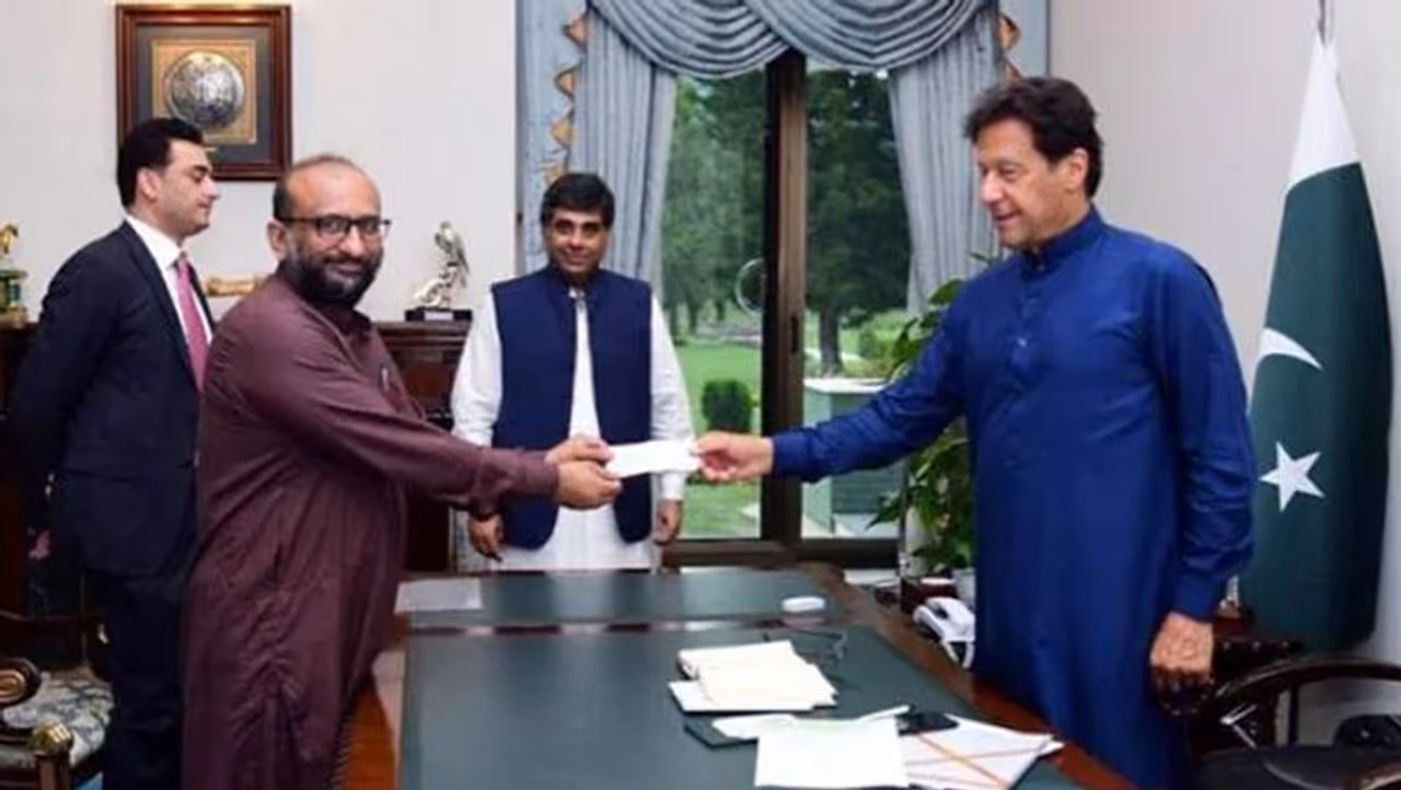 10 மில்லியன் பணத்தை வழங்கினார் இஸ்லாமாபாத்தில் உள்ள பிரதமரின் வீட்டில் காசோலை வழங்கப்பட்டது , அப்போது பிரதமர் இம்ரான் மற்றும் பைசல் ஆகிய இருவருமே முகக்கவசமோ அல்லது கையுறையோ அணியவில்லை ,