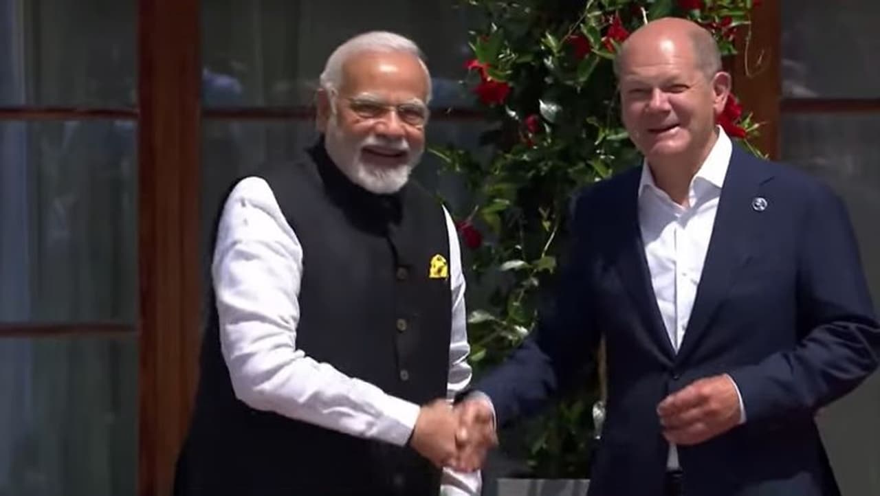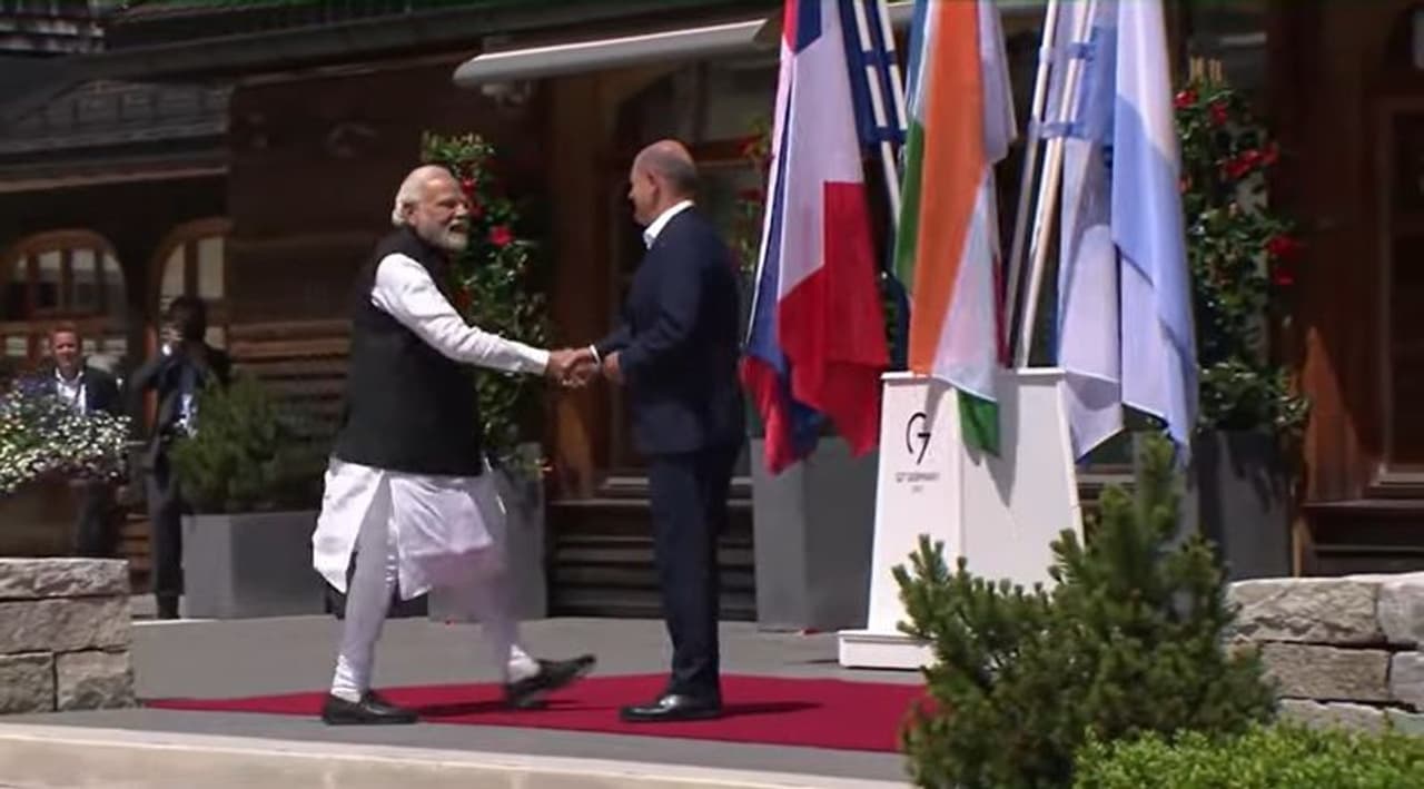 ஜி7 உச்சி மாநாட்டில் பங்கேற்பதற்காக ஜெர்மனி சென்ற பிரதமர் மோடி, ஷ்லோஸ் எல்மாவ் நகரில் ஜெர்மன் அதிபர் ஓலாஃப் ஷால்ஸை சந்தித்தார்.