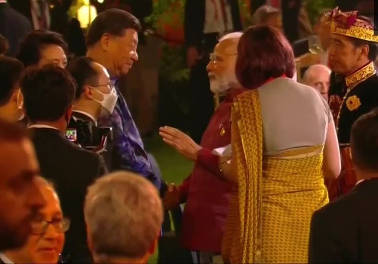 அதிபர் ஜி ஜின்பிங்கும், அவரது மனைவி பெங் லியுவானும் இந்தோனேசிய அதிபர் ஜோகோ விடோடோவுடன் பேசுவதற்கு அருகில் நின்றபோது, அமெரிக்க வெளியுறவு அமைச்சர் ஆண்டனி பிளிங்கனுடன் பிரதமர் மோடி அமர்ந்து உரையாடினார். மோடி தனது இருக்கையில் இருந்து எழுந்து சிரித்துக் கொண்டே, பிரதமர் மோடி ஜி ஜின்பிங்குடன் கைகுலுக்கினார்.
