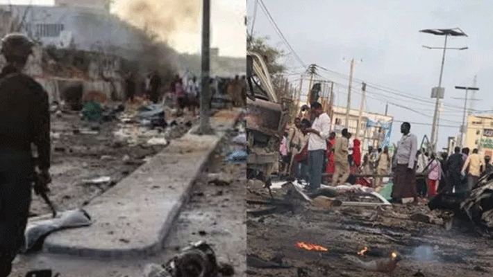 சோமாலியாவின் தெற்கு பகுதியில் உள்ள கிஸ்மாயோ நகரில் உள்ள பிரபல ஓட்டலுக்கு நேற்று ஒரு வாகனம் வந்தது. ஓட்டலின் பிரதான கட்டிடத்தை நெருங்கிய அந்த வாகனம், திடீரென பயங்கர சத்தத்துடன் வெடித்து சிதறியது. இதில், ஓட்டலில் இருந்த பலரது உடல்கள் சிதறின. இதனையடுத்து, மற்றொரு வாகனத்தில் வந்த தீவிரவாதிகள் பொதுமக்களை நோக்கி சரமாரியாக சுட தொடங்கினர்.