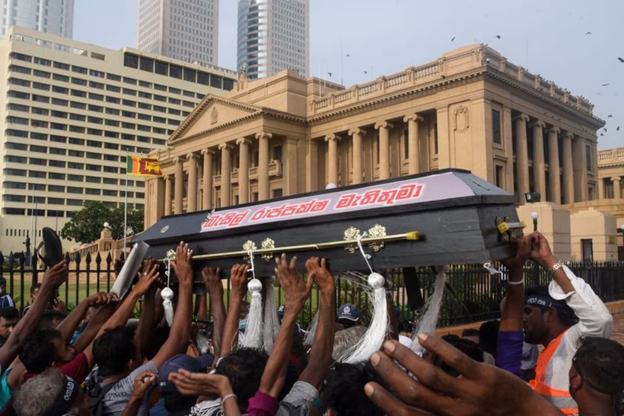 இதனால், பொருட்களின் விலைவாசி விண்ணை முட்டும் அளவுக்கு உயர்ந்துவிட்டதால் கடந்த ஓரு மாதமாக மக்கள் தொடர்ந்து போராட்டம் நடத்தி வருகிறார்கள். மக்களின் போராட்டத்துக்கு பதில் அளிக்க முடியாமல் அமைச்சர்கள் அனைவரும் ராஜினாமா செய்துவிட்டனர். அதிபர் கோத்தபய ராஜபக்ச நம்பிக்கையில்லாத் தீர்மானத்தைச்சந்திக்க வேண்டும் அல்லது ராஜினாமா செய்ய வேண்டும் என எதிர்க்கட்சிகள் கோருகின்றன.