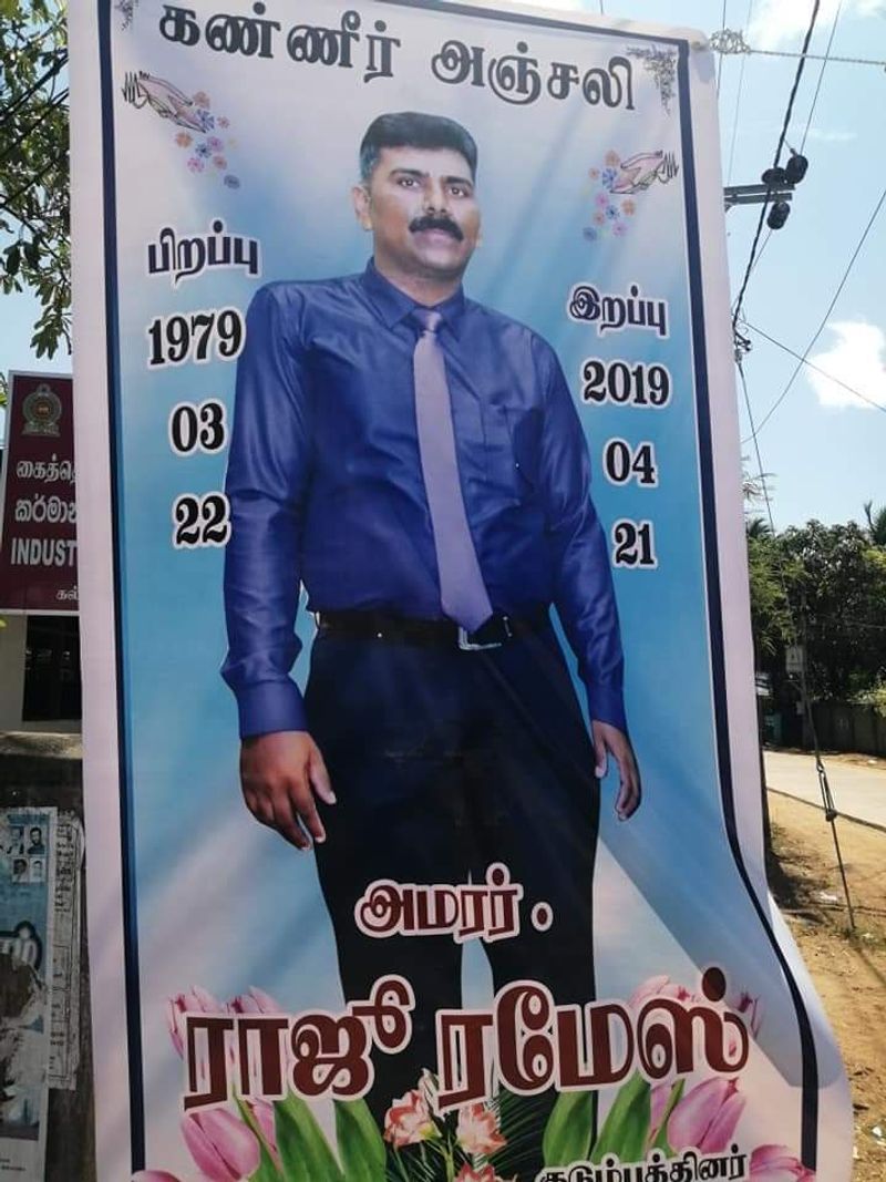 இலங்கையின் தற்கொலை தாக்குதலில் தீவிரவாதியை தேவாலயத்திற்குள் அனுமதிக்காமல் தடுத்தி நிறுத்திய ரமேஷ் என்ற இளைஞர், குண்டு வெடிப்பில் பரிதாபமாக உயிரிழந்தார். தேவாலத்துக்குள் தீவிரவாதியை செல்லவிடாமல் தடுத்து பல உயிர்களைக் காப்பாற்றி அவரது தியாகத்தைத் பலரும் புகழ்ந்து வருகின்றனர்.