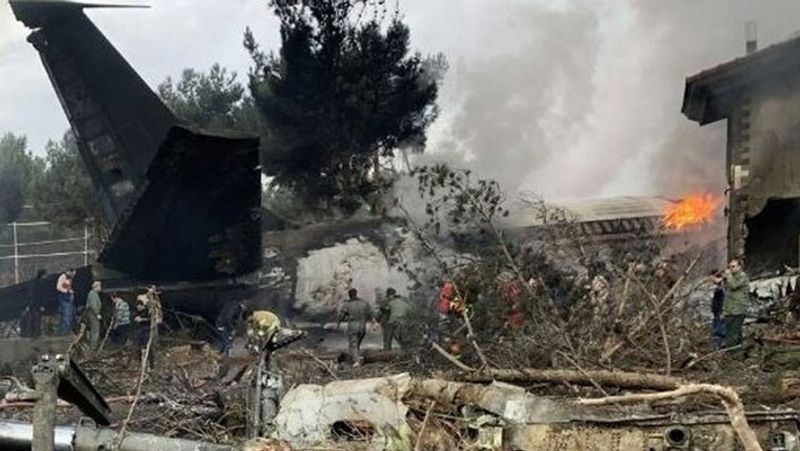 கிர்கிஸ்தான் நாட்டின் பிஷ்கெக் நகரில் இருந்து, போயிங் 707 ரக சரக்கு விமானம் ஈரானுக்கு புறப்பட்டு வந்தது. அதில், விமானிகள் உள்ளிட்ட 10 பேர் பயணம் மேற்கொண்டதாக கூறப்படுகிறது. அப்போது சரக்கு வாகனம் தரையிறக்க முற்பட்ட போது மோசமான வானிலை காரணமாக விமானம் விழுந்து நொறுங்கி தீப்பிடித்து எரிந்தது.