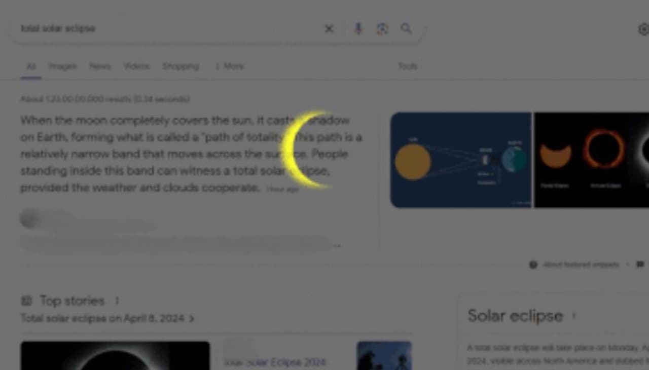 இந்நிலையில் இந்த அதிசய நிகழ்வினை நினைவு கூறும் வகையில் பிரபல கூகுள் நிறுவனம் ஒரு புதிய அனிமேஷனை வெளியிட்டுள்ளது. அதன்படி இணையத்தில் நீங்கள் "சூரிய கிரகணம்" என்று தமிழில் டைப் செய்தால் அந்த அனிமேஷன் வந்து செல்லும். ஆங்கிலத்திலும் "April 8 Eclipse", "Solar Eclipse" போன்ற வார்த்தைகளை கூகுளில் உள்ளிடும்போது அனிமேஷன் வந்து செல்லும் வண்ணம் வடிவமைக்கப்பட்டுள்ளது. இது இணையவாசிகள் மத்தியில் வெகுவான வரவேற்பை பெற்று வருகிறது.