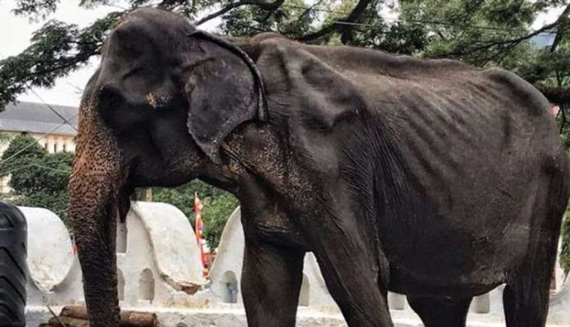 இலங்கை புத்த கோவில் திருவிழாவில் கட்டாயப்படுத்தப்பட்டு பங்கேற்ற எலும்பும் தோலுமான 70 வயது டிக்கிரி யானை பரிதாபமாக உயிரிழந்தது.