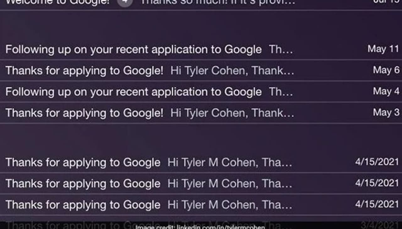 கூகுளில் எப்படியாவது வேலைக்கு சேர்ந்துவிட வேண்டும் என்ற கனவை, கனவாக மட்டும் வைத்துக் கொள்ளாமல், லட்சியத்தை அடைவதற்கு அமெரிக்காவைச் சேர்ந்த டைலர் கோஹன் முயற்சித்து அதில் வெற்றியும் பெற்றுள்ளார்.