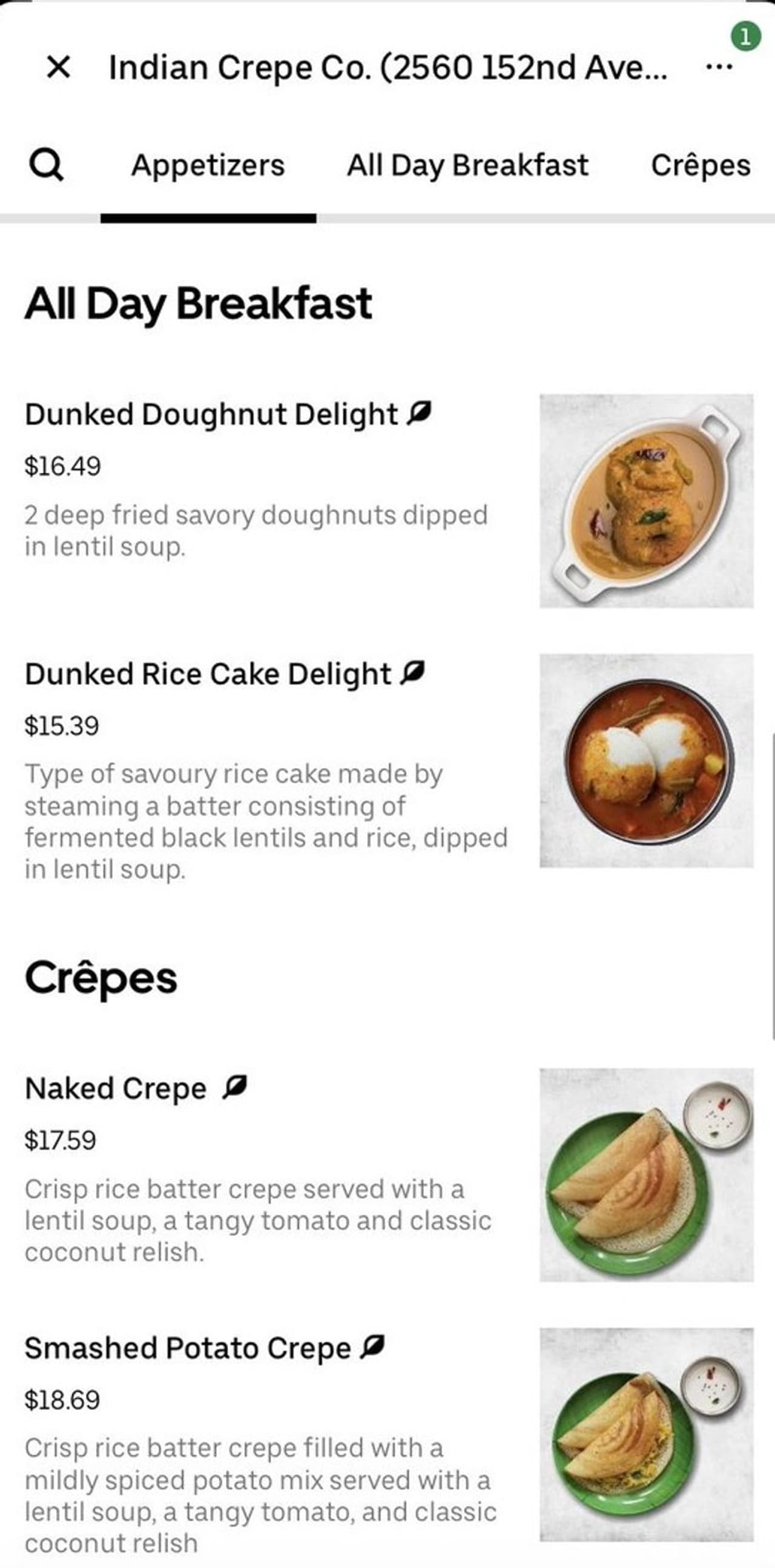 இட்லியைப் பொறுத்தவரை, இது பிரபலமான இந்திய காலை உணவு. அது டங்க்ட் ரைஸ் கேக் டிலைட் என்று குறிப்பிடப்பட்டுள்ளது. இந்த பெயர் மாற்றமே வியப்பை ஏற்படுத்தியுள்ள நிலையில் இதன் விலைன் அதிர்ச்சியை ஏற்படுத்தியுள்ளது. நொறுக்கப்பட்ட உருளைக்கிழங்கு க்ரீப் $18.69 (ரூ. 1,491)க்கு விற்கப்படுகிறது.
