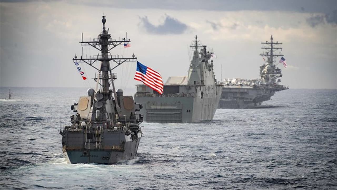 அதே நேரத்தில், தென் சீனக் கடலுக்கு அமெரிக்கா தனது கப்பற்படை கப்பல்கள் மற்றும் விமானம் தாங்கிக் கப்பல்களை அனுப்பி சீனாவை அச்சுறுத்தி வருகிறது. அமெரிக்க கடற்படையின் இந்த ஆத்திரமூட்டும் நடவடிக்கையால் இரு நாடுகளுக்கும் இடையே ராணுவ மோதல் உருவாக்கக்கூடும் என சர்வதேச அரசியல் நோக்கர்கள் எச்சரிக்கின்றனர். தென் சீன கடலில் சீனா கட்டுப்பாட்டில் உள்ள தீவுகள் மற்றும் திட்டுக்கள் மீது அமெரிக்க கடற்படை தாக்குதல் நடத்தக்கூடும் என தகவல் வெளியாகியுள்ளது, இதனால் இரு நாட்டும் இடையே போர் ஏற்பட அதிக வாய்ப்புள்ளது என்றும் தெரிவிக்கப்படுகிறது. சர்வதேச சட்டத்தை பொருத்தவரை தென் சீனக் கடலில் உள்ள நன்ஷா (ஸ்ப்ராட்லி) தீவுகள் மீதான சீனாவின் இறையாண்மை மற்றும் கடல் உரிமைகளை நிராகரித்து அமெரிக்கா கருத்து தெரிவித்து வருகிறது.