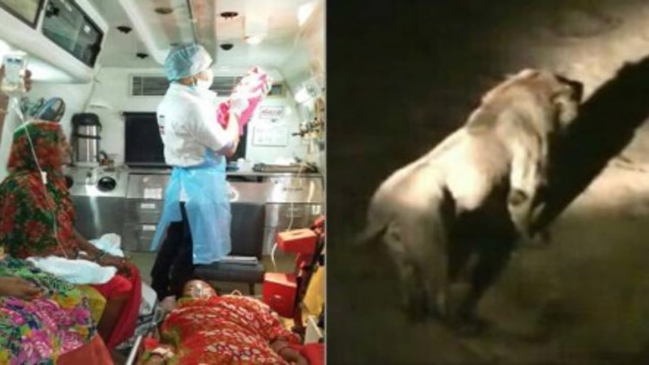 இந்நிலையில், ஆம்புலென்சில் இருந்த மங்குபென்னுக்கு பிரசவ வலி அதிகமாகி, துடிக்கத் தொடங்கினார்.