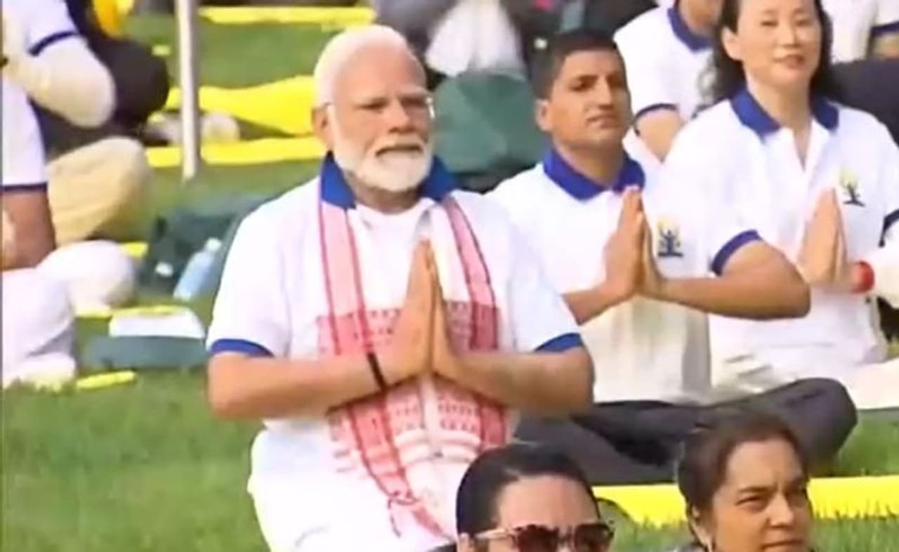 சர்வதேச யோகா தினத்தை முன்னிட்டு, நியூயார்க்கில் உள்ள ஐ.நா தலைமையகத்தில் பிரதமர் நரேந்திர மோடி தலைமையில் பிரம்மாண்ட யோகா நிகழ்ச்சி நடைபெற்றது. அப்போது உரையாற்றிய பிரதமர் மோடி “முழு மனித இனத்தின் சந்திப்பில் நாங்கள் இங்கு கூடியுள்ளோம். உங்கள் அனைவரையும் பார்த்ததில் மகிழ்ச்சி அடைகிறேன். அனைவருக்கும் நன்றி. ஏறக்குறைய ஒவ்வொரு தேசிய இனமும் இன்று இங்கு பிரதிநிதித்துவப்படுத்தப்பட்டுள்ளது என்று நினைக்கிறேன். யோகா என்றால் ஒன்றுபடுவது, எனவே நீங்கள் ஒன்றிணைவது யோகாவின் மற்றொரு வடிவத்தின் வெளிப்பாடு.